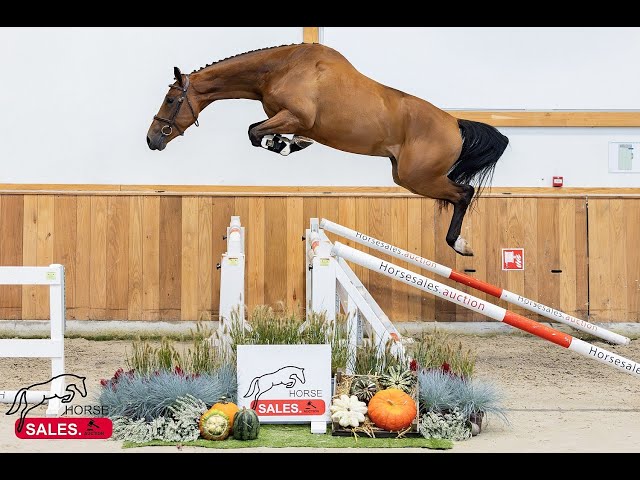 Dit veilingitem wist ons op een heel positieve manier te verrassen. Allereerst bij zijn binnenkomst. Waar hij een heel sportief en sterk model liet zien. En vervolgens op het hout. Waar de lat niet snel hoog genoeg gelegd kon worden. Hij bleef van de palen knallen. En deed dat met een techniek die het beste voor zijn sportieve carriere doet vermoeden. Steeds op dezelfde manier. Met een snelle schouder. En een achterhand die een goede bascule vertoont. Een opvallende verschijning dus waar we zeker van gaan horen. Helemaal met de wetenschap dat deze Balia-telg gefokt is uit de zus van het 1m60 springpaard SIG Debalia (Michael Christofolleti).